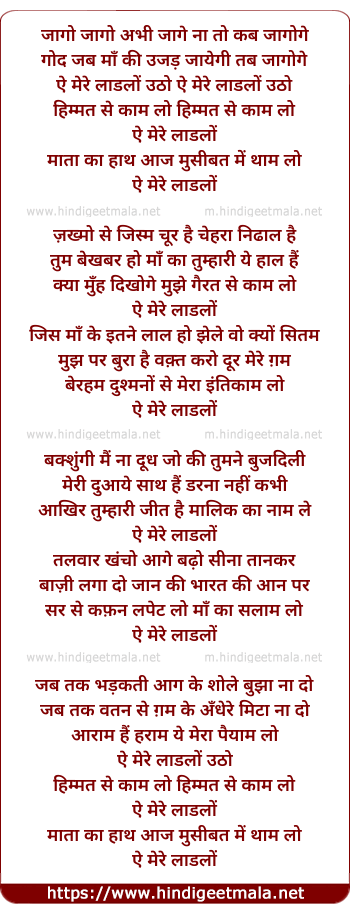 Lyrics of Ae Mere Laadlo Utho - जागो जागो अभी जागे ना तो कब जागोगे