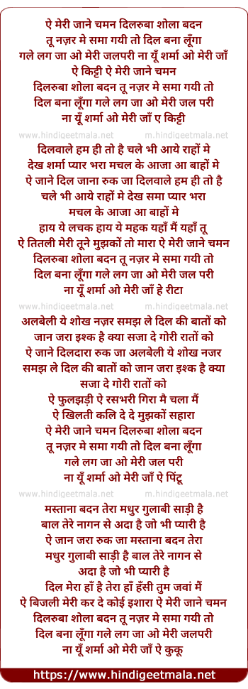Lyrics of Ae Meri Jane Chaman Dilruba Shola Badan - ऐ मेरी जाने चमन दिलरुबा शोला बदन