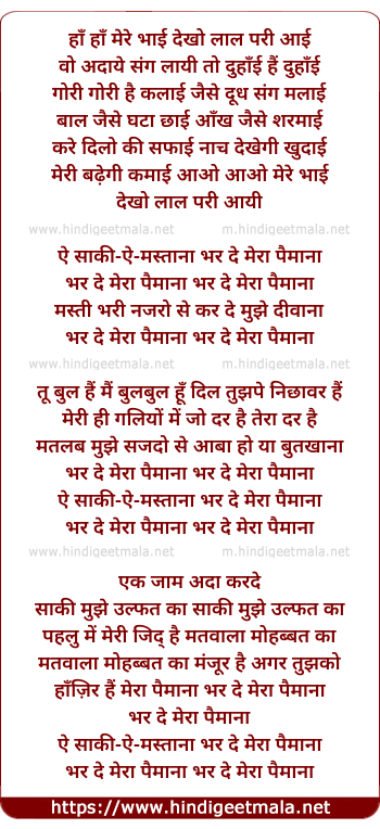bhar de mera paymana bhar de mera paymana