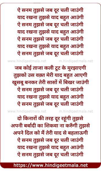 Lyrics of Ae Sanam Tujhse Main (Female) - ऐ सनम तुझे मैं