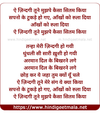 Lyrics of Ae Zindagi Tune Mujhpe - ऐ ज़िन्दगी तूने मुझपे