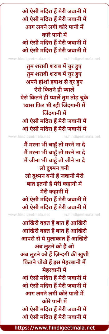 o aisi madira hai meri jawani me