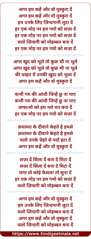Lyrics of Agar Hum Kahen Aur Wo Muskura Dein - अगर हम कहें और वो मुस्कुरा दें