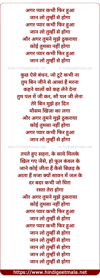 Lyrics of Agar Pyar (Remix) - अगर प्यार कभी फिर हुआ