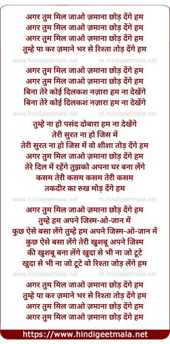 Lyrics of Agar Tum Mil Jao - अगर तुम मिल जाओ