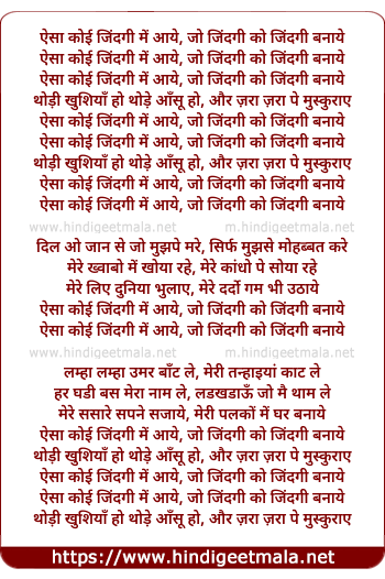 Lyrics of Aisa Koyi Jindagi Me Aaye - ऐसा कोई जिंदगी में आये