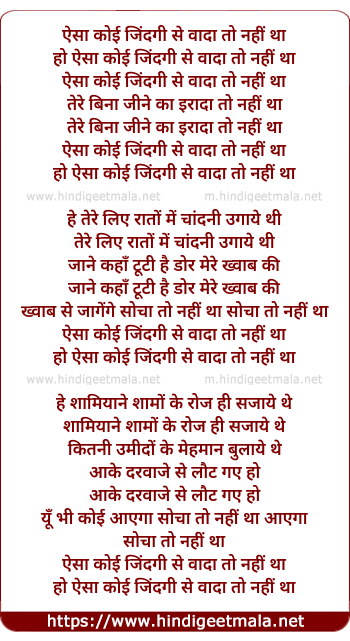 Lyrics of Aisa Koyee Jindagee Se Vaada Toh Nahee Tha - ऐसा कोई जिंदगी से वादा तो नहीं था
