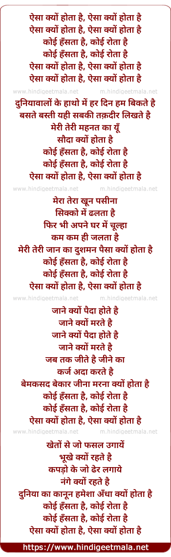 Lyrics of Aisa Kyu Hota Hai - ऐसा क्यों होता है,