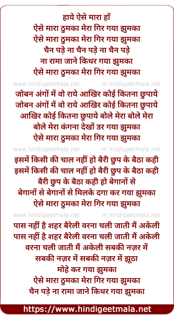 Lyrics of Aisa Maara Thumka, Mera Gir Gaya Jhumka - ऐसे मारा ठुमका, मेरा गिर गया झुमका