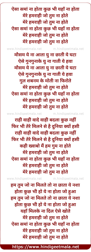 Lyrics of Aisa Samaa Naa, Hota Kuch Bhi Yaha Na Hota - ऐसा समां ना होता कुछ भी यहाँ ना होता