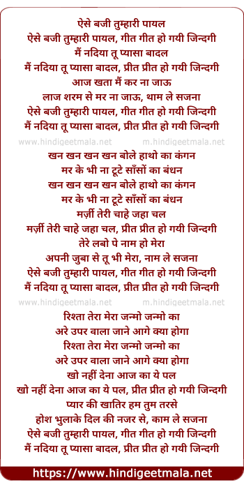 Lyrics of Aise Baji Tumhari Paayal - ऐसे बजी तुम्हारी पायल