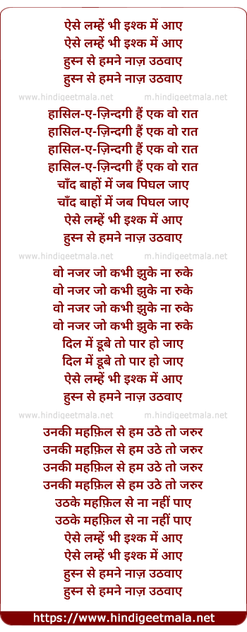 Lyrics of Aise Lamhe Bhi Ishq Me - ऐसे लम्हें भी इश्क में आए
