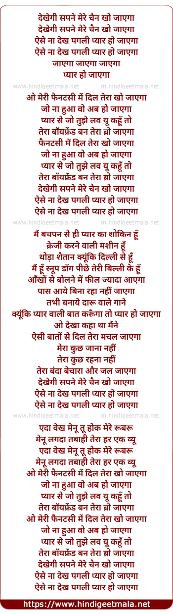 Lyrics of Aise Na Dekh - देखेगी सपने मेरे चैन खो जाएगा