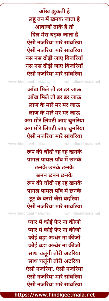 Lyrics of Aisi Najariya Maare Sanwariya - ऐसी नजरिया मारे सांवरिया
