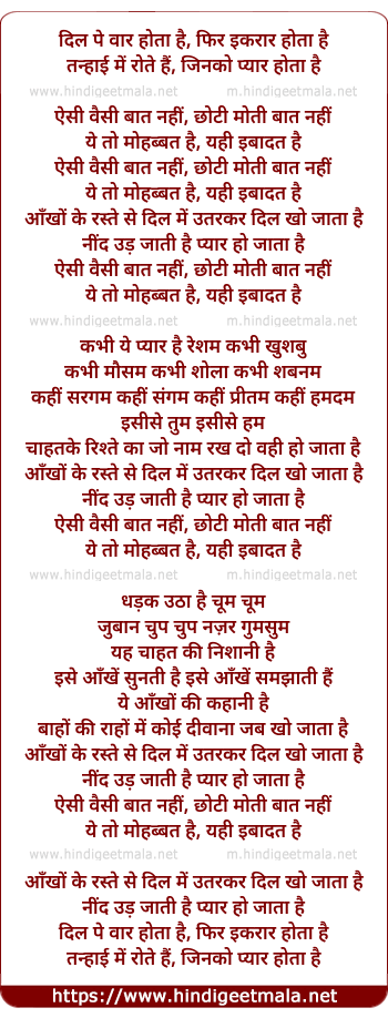 Lyrics of Aisi Waisi Baat Nahin - ऐसी वैसी बात नही
