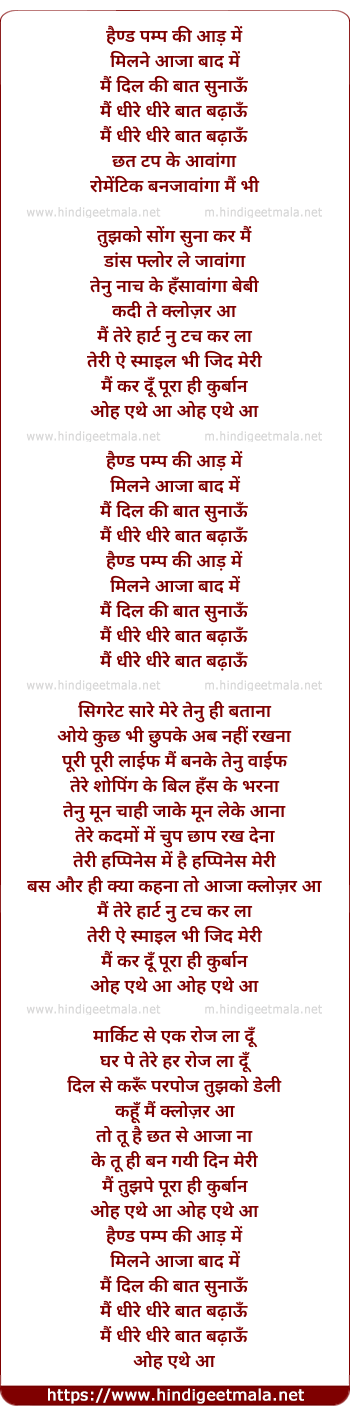 Lyrics of Aithey Aa (Dance Version) - एथे आ