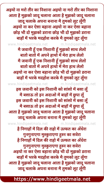 Lyrics of Aiyo Na Maro Teer Ka Nishana - अईयो ना मारो तीर का निशाना