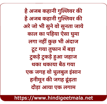 Lyrics of Ajab Kahani Gulliver Kee - अजब कहानी गुल्लिवर की