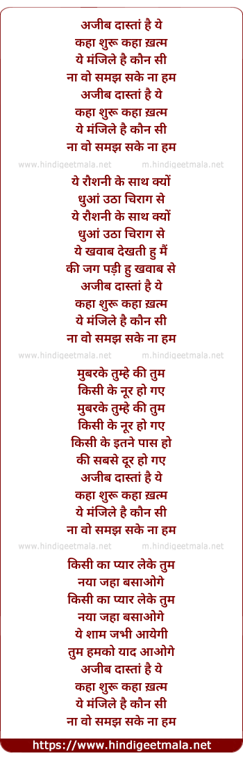 Ajeeb Daastan Hai Ye - अजीब दास्तां है ये