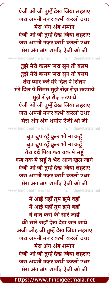 Lyrics of Aji O Ji Tumhen Dekh Jiya - ऐजी ओ जी तुम्हें देख जिया