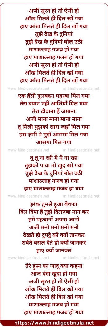 Lyrics of Aji Surat Ho To Aisi Ho - अजी सूरत हो तो ऐसी हो