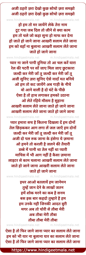 ho jaate ho jaana jaana aakhri salaam lete jaana