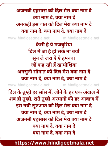 Lyrics of Ajnabee Ehsas Ko - अजनबी एहसास को