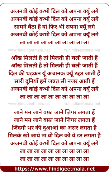 Lyrics of Ajnabi Koi Kabhi - अजनबी कोई कभी