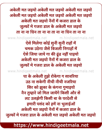 Lyrics of Akeli Mat Jaiyo, Nainon Me Kajara Daalke - अकेली मत जइयो, नैनों में कजरा डालके