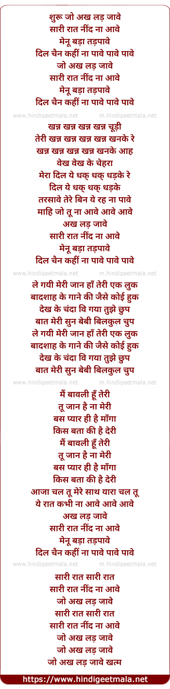 Lyrics of Akh Lad Jaave - अख लड़ जावे