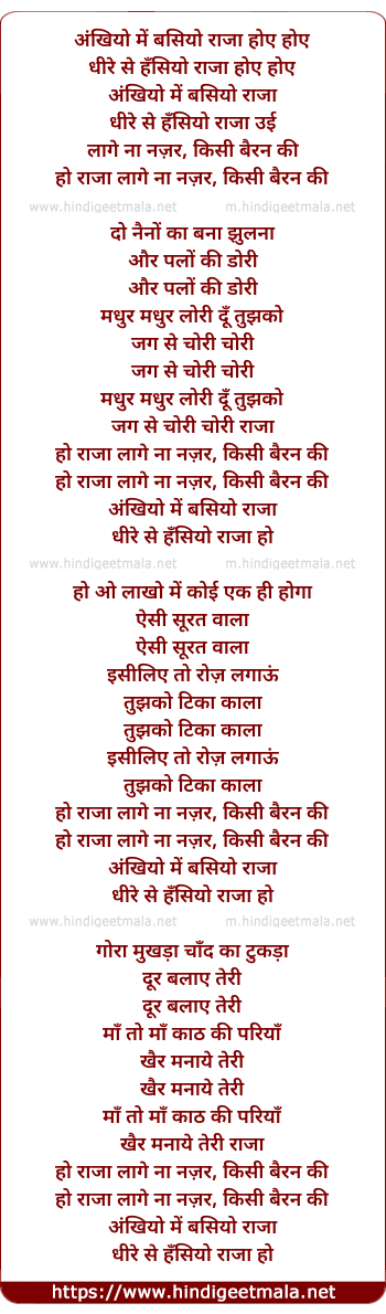 Lyrics of Akhiyo Me Basiyo Raja - अंखियो में बसियो राजा होए होए