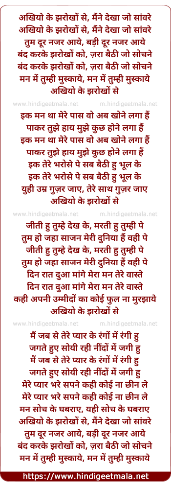 Lyrics of Akhiyon Ke Jharokhon Se - अंखियों के झरोखों से
