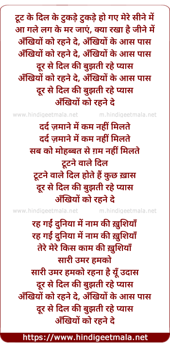 Lyrics of Ankhiyo Ko Rahne De, Ankhiyo Ke Aas Paas - अँखियों को रहने दे, अँखियों के आस पास