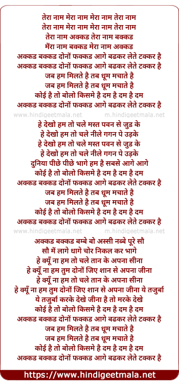 Lyrics of Akkad Bakkad Dono Phakkad - अक्कड बक्कड दोनों फक्कड