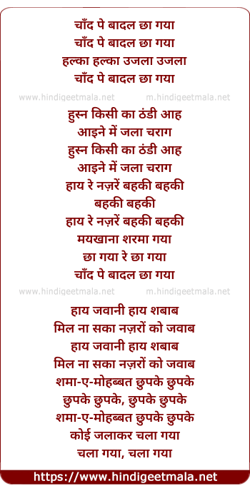 Lyrics of Chand Pe Badal Chha Gaya, Halka Halka Ujlaa Ujlaa - चाँद पे बादल छा गया, हल्का हल्का उजला उजला