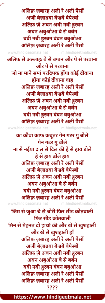 Lyrics of Alif Zabaraah - अलिफ़ ज़बारह