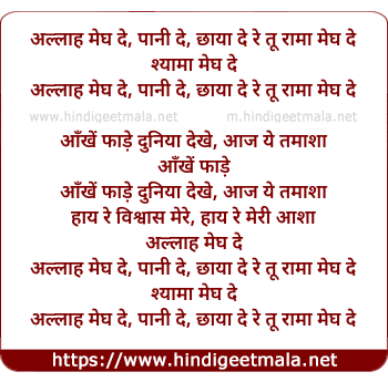 Lyrics of Allaah Megh De, Paani De Chhaayaa De - अल्लाह मेघ दे, पानी दे, छाया दे