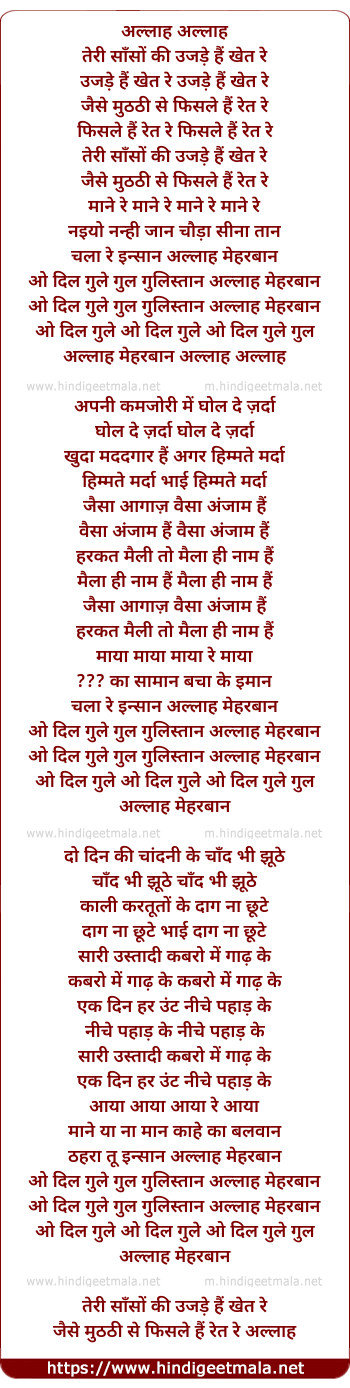 Lyrics of Allah Meherbaan - अल्लाह मेहरबान