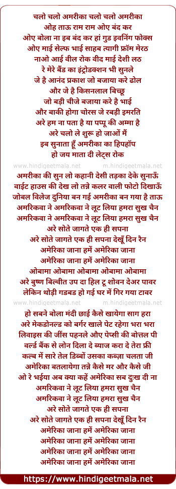 Lyrics of Amerika Jana Hume Amerika Jana - अमेरिका जाना हमें अमेरिका जाना