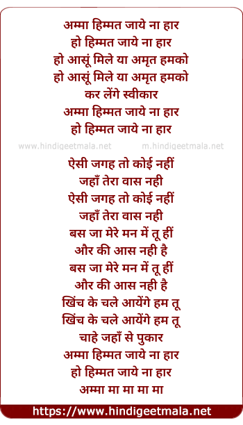 Lyrics of Amma Himmat Jaye Na Haar (Sad)