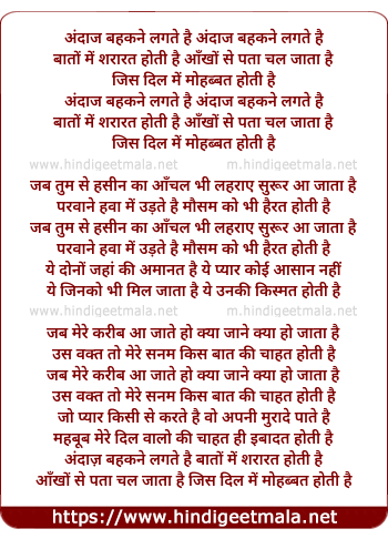 Lyrics of Andaz Bahakne Lagte Hai - अंदाज बहकने लगते है