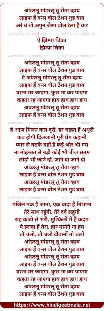 Lyrics of Anderlu Maandarlu Tu Ro Tawaai (2) - आंडरलू मांडरलू तू रोता व्हाय