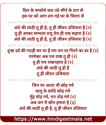 Lyrics of Andhe Ki Laathi Tu Hi Hai - अंधे की लाठी तू ही है