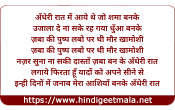 Lyrics of Andheri Rat Me Aye The Jo Shama Banke - अँधेरी रात में आये थे जो शमा बनके