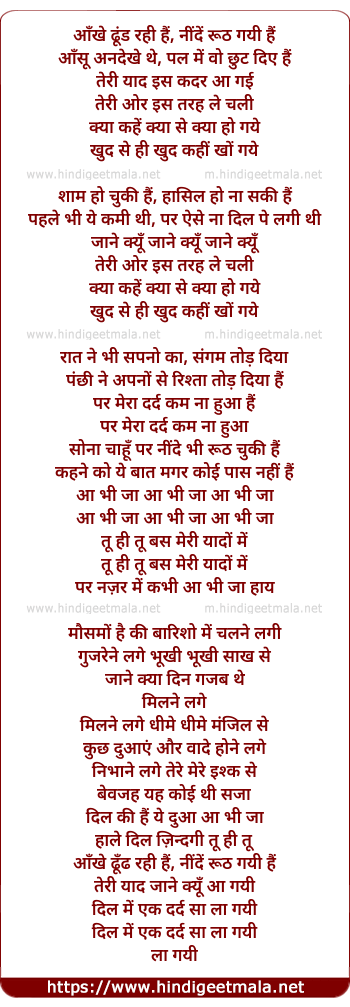 Lyrics of Ankhe Dhundh Rahi Hai Tumko - आँखे ढूंड रही हैं तुमको