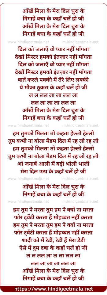 Lyrics of Ankhe Milaa Ke Dil Chura Ke - आँखें मिला के दिल चुरा के
