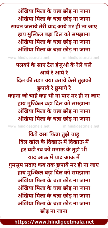 Lyrics of Ankhiya Mila Ke Channa - अंखिया मिला के चन्ना