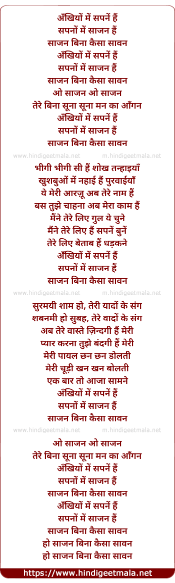 Lyrics of Ankhiyo Me - अँखियों में सपनें हैं