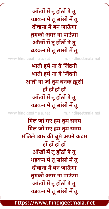 Poetic Translation - Lyrics of Ankho Me Tu Hotho Pe Tu (Slow) - आँखों में तू होंठों पे तू