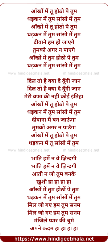 Lyrics of Ankho Men Tu Hotho Pe Tu